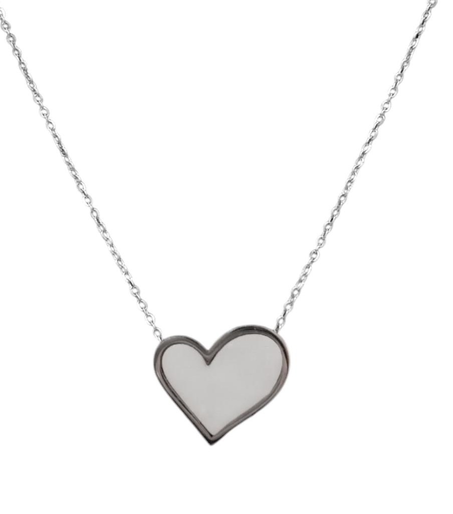 Ατσάλινο κολιέ σε ασημί χρώμα, με μοτίφ ιριδίζουσα καρδούλα. Ανθεκτικό σε νερό και άρωμα. Όμορφη πρόταση δώρου!