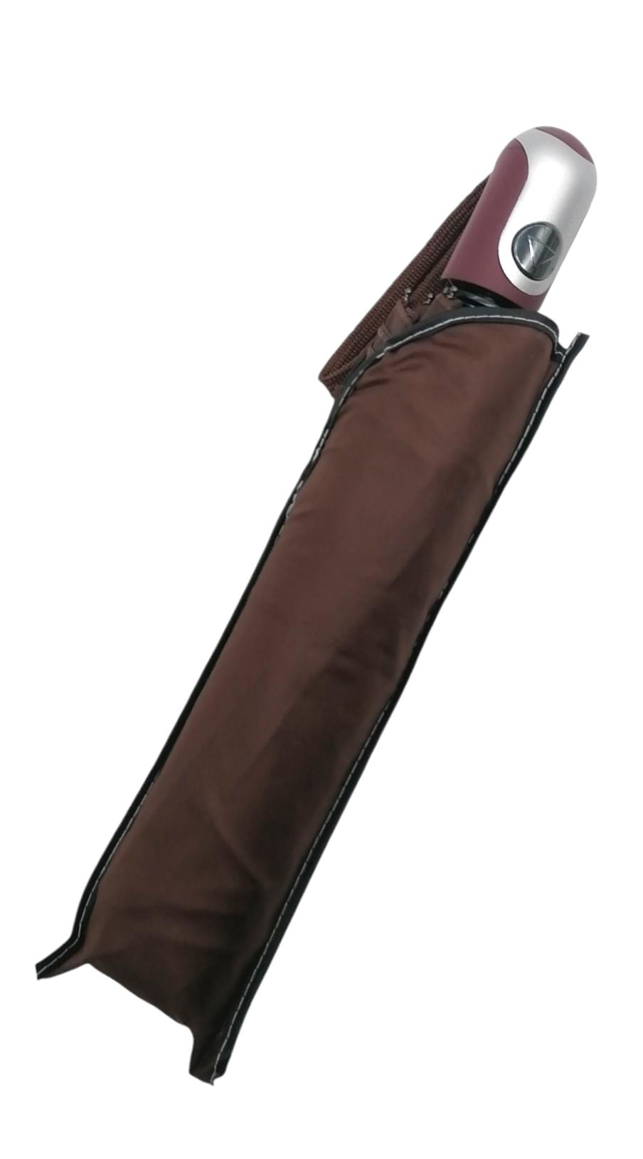 Ομπρέλα μονόχρωμη σε καφέ χρώμα. Είναι ανθεκτική στον αέρα και ανοίγει με αυτόματο μηχανισμό. Διαθέτει θήκη αποθήκευσης.