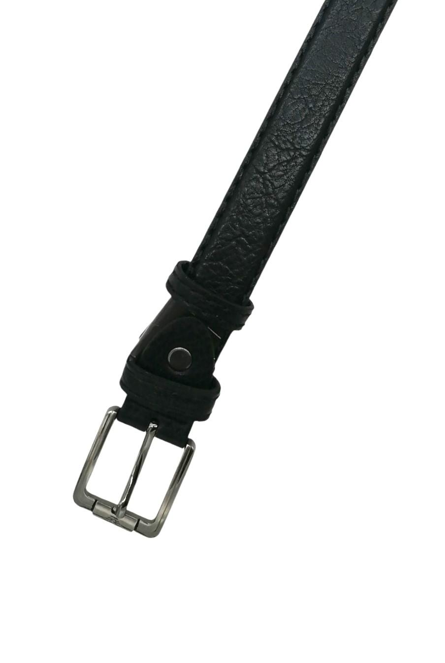 Λεπτή ζώνη από τεχνόδερμα με ασημί αγκράφα.