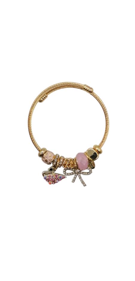 Ατσάλινο βραχιόλι με charms σε χρυσό χρώμα. Με κύκνο και φιογκάκι. Με ρυθμιζόμενο μέγεθος. Όμορφη πρόταση δώρου!