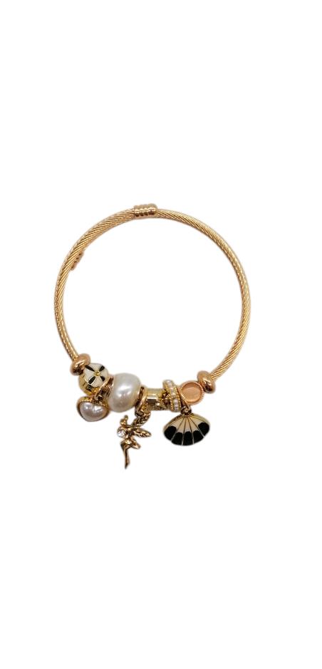 Ατσάλινο βραχιόλι με charms σε χρυσό χρώμα. Με μοτίφ νεραίδα. Με ρυθμιζόμενο μέγεθος. Όμορφη πρόταση δώρου!