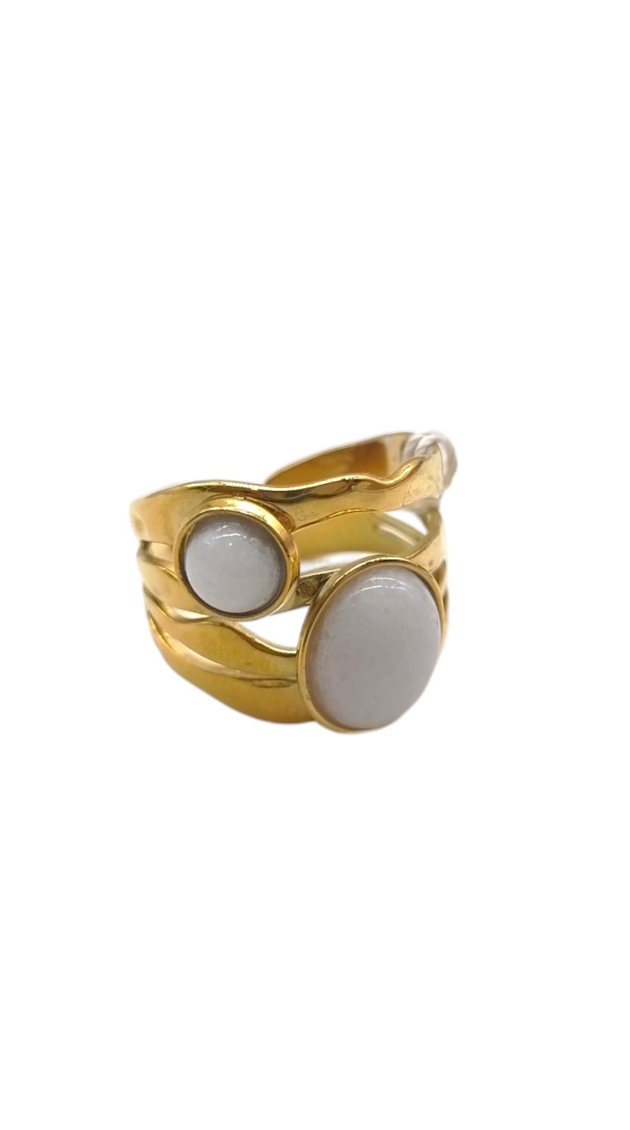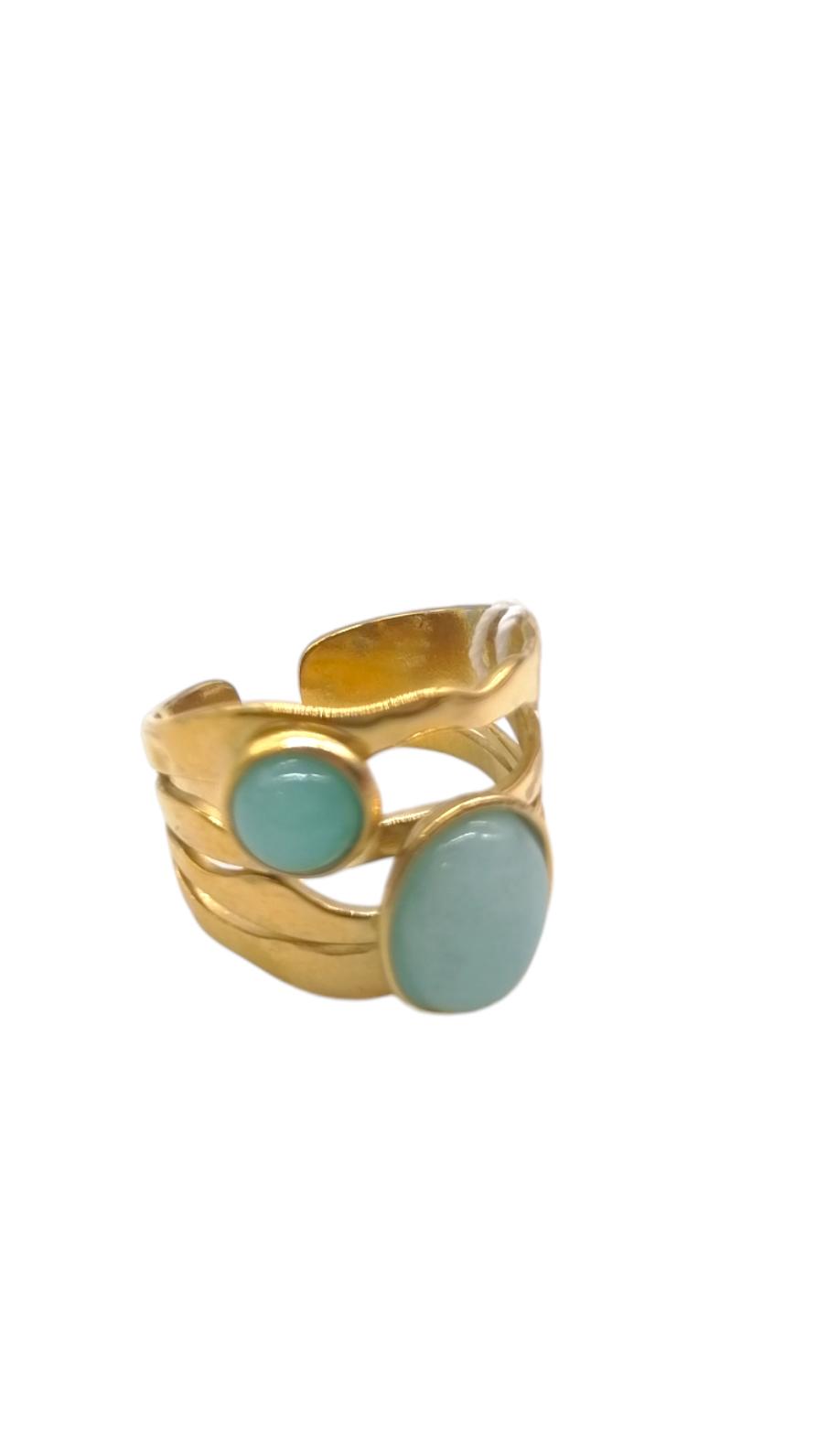 Ατσάλινο χρυσό δαχτυλίδι σε πράσινο, λευκό και ροζ χρώμα. Είναι ανθεκτικό σε νερό και δεν μαυρίζει. Όμορφη πρόταση δώρου!