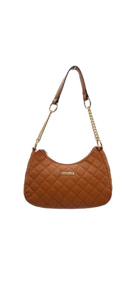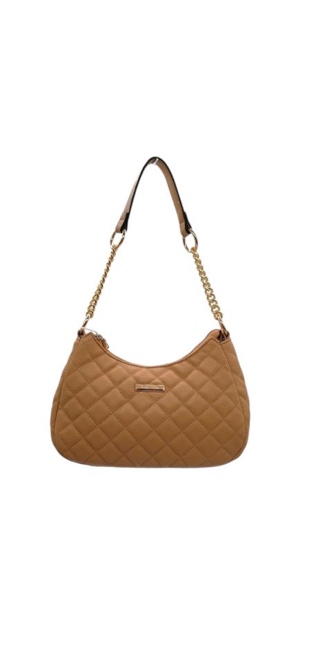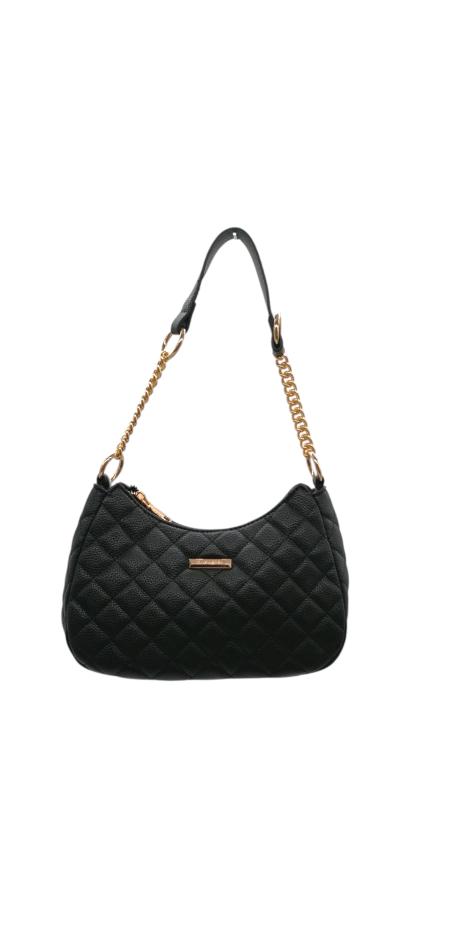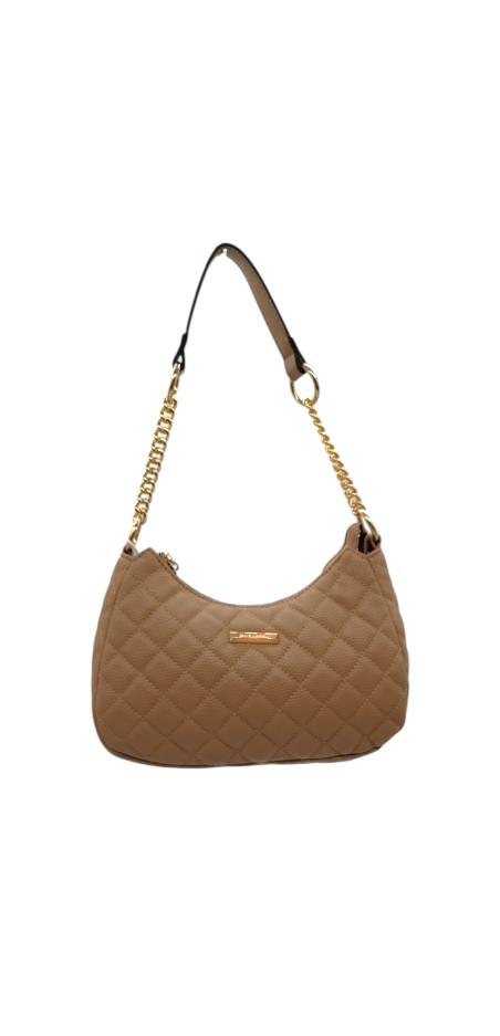 Γυναικεία τσάντα από τεχνόδερμα σε κομψό σχέδιο καπιτονέ και χρυσή αλυσίδα. Μπορεί να φορεθεί στον ώμο και χιαστί.