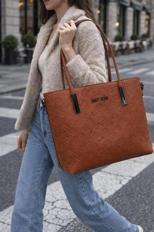 Γυναικεία τσάντα ώμου με κομψό σχέδιο και ανάγλυφες λεπτομέρειες.