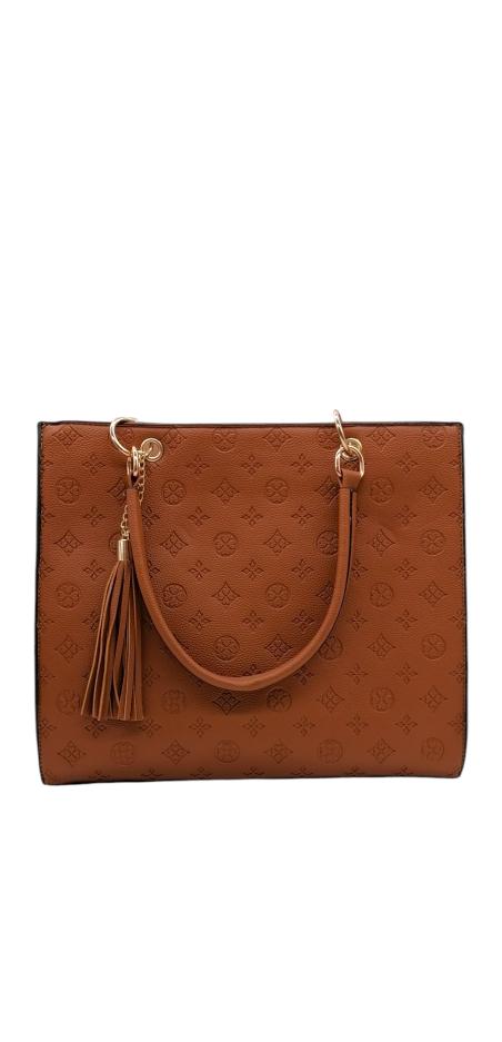 Γυναικεία τσάντα ώμου με κομψό σχέδιο και ανάγλυφες λεπτομέρειες.