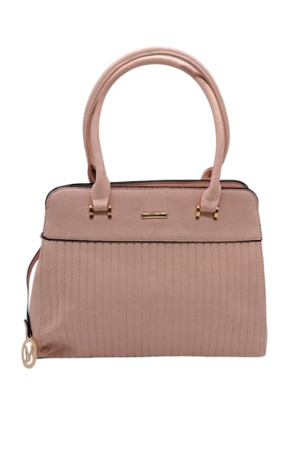 Γυναικεία τσάντα ώμου με κομψό ριγέ μοτίβο και χρυσές λεπτομέρειες.