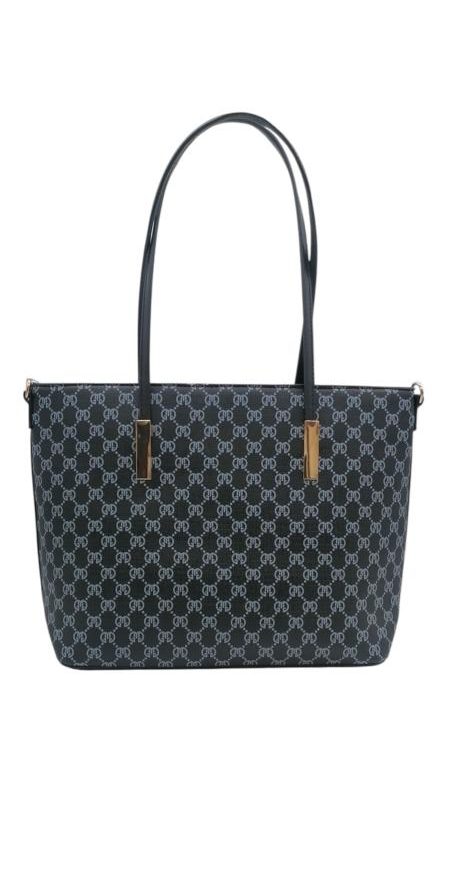 Γυναικεία τσάντα ώμου με κομψό σχέδιο και χρυσές λεπτομέρειες σε μαύρο χρώμα και μακριά λουριά.