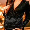 Κομψή γυναικεία τσάντα ώμου/χιαστί σε όψη γυαλιστερό σουέτ τεχνόδερμα.