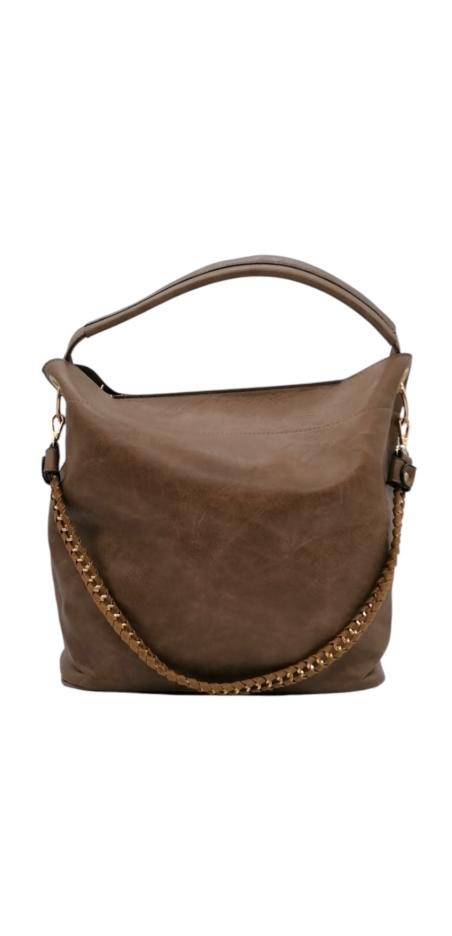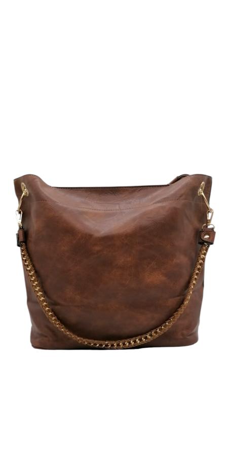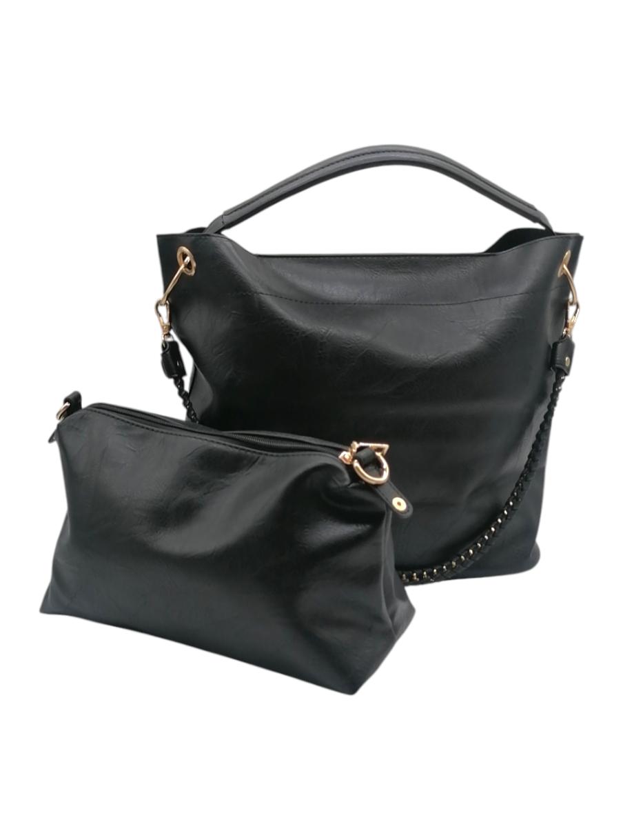 Κομψή γυναικεία τσάντα ώμου 2 σε 1 με δύο λουράκια και εσωτερικό τσαντάκι. Με χρυσές λεπτομέρειες.