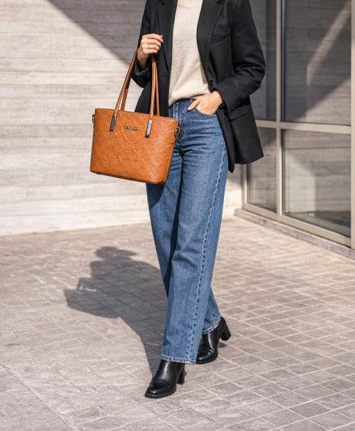 Γυναικεία τσάντα ώμου με κομψό σχέδιο και ανάγλυφες λεπτομέρειες.
