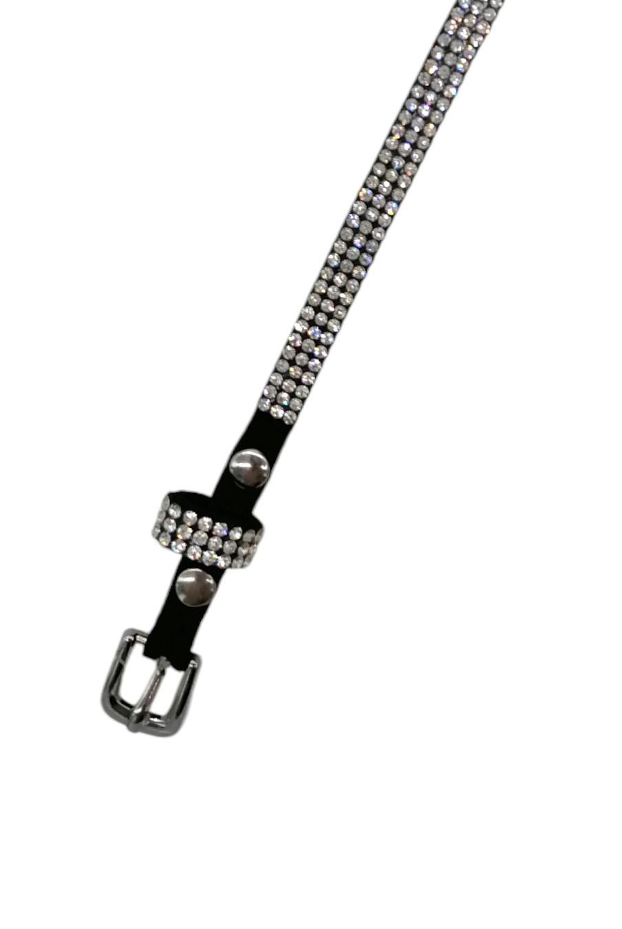 Λεπτό μαύρο ζωνάκι με ασημί αγκράφα, διακοσμημένο με στρασάκια.