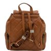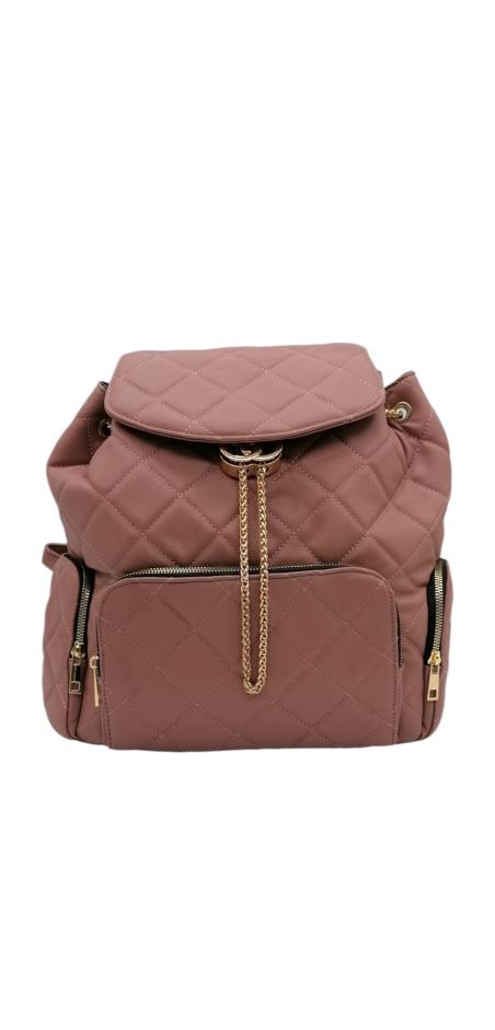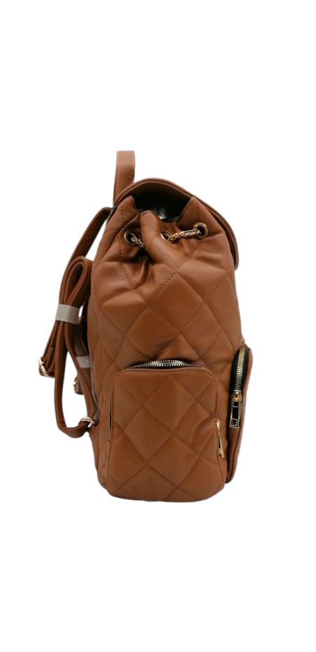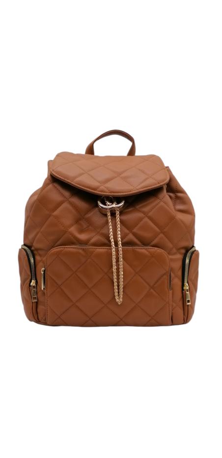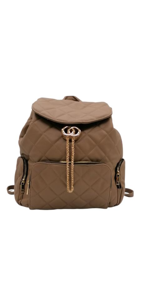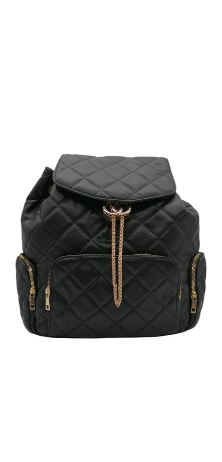 Γυναικείο σακίδιο πλάτης από τεχνόδερμα σε καπιτονέ σχέδιο και κλείσιμο με καπάκι. Διαθέτει 1 κεντρική θέση με κλείσιμο ρυθμιζόμενη αλυσίδα. Έχει δυο θέσεις στα πλάγια και ακόμα μια στο κέντρο με κλείσιμο φερμουάρ. Ταιριάζει με όλα τα στυλ και προσφέρει άνεση όλες τις ώρες. Με ρυθμιζόμενα λουριά.