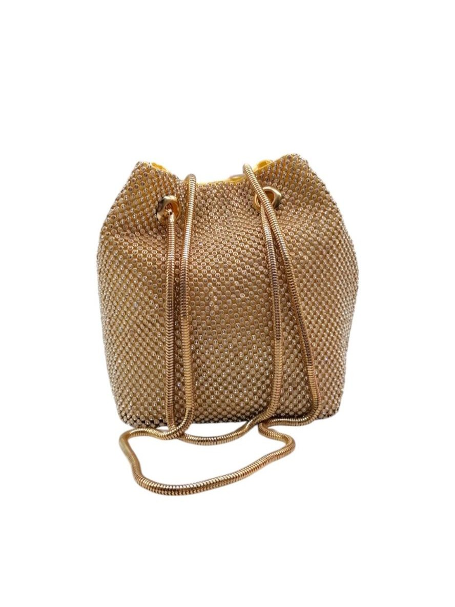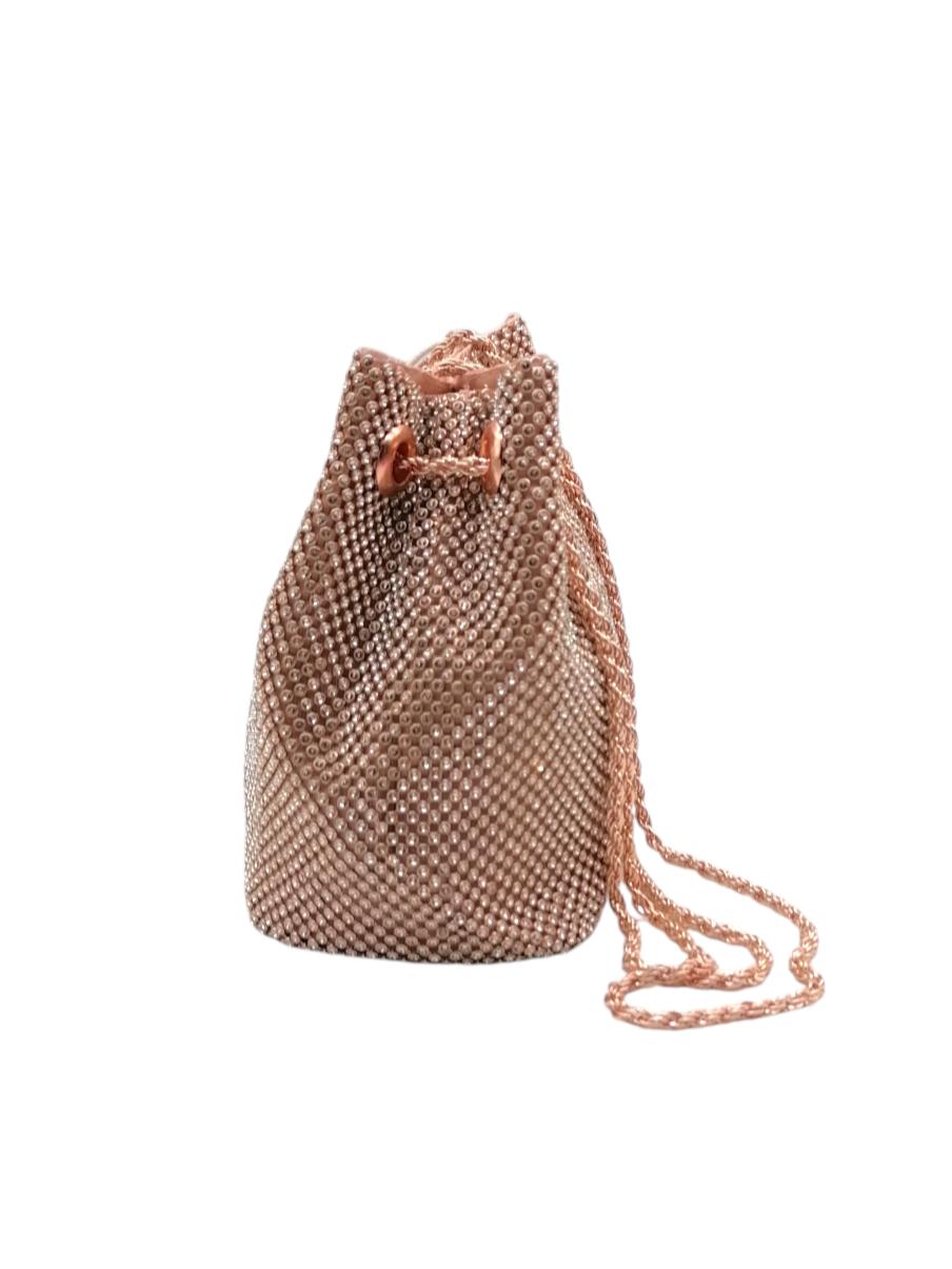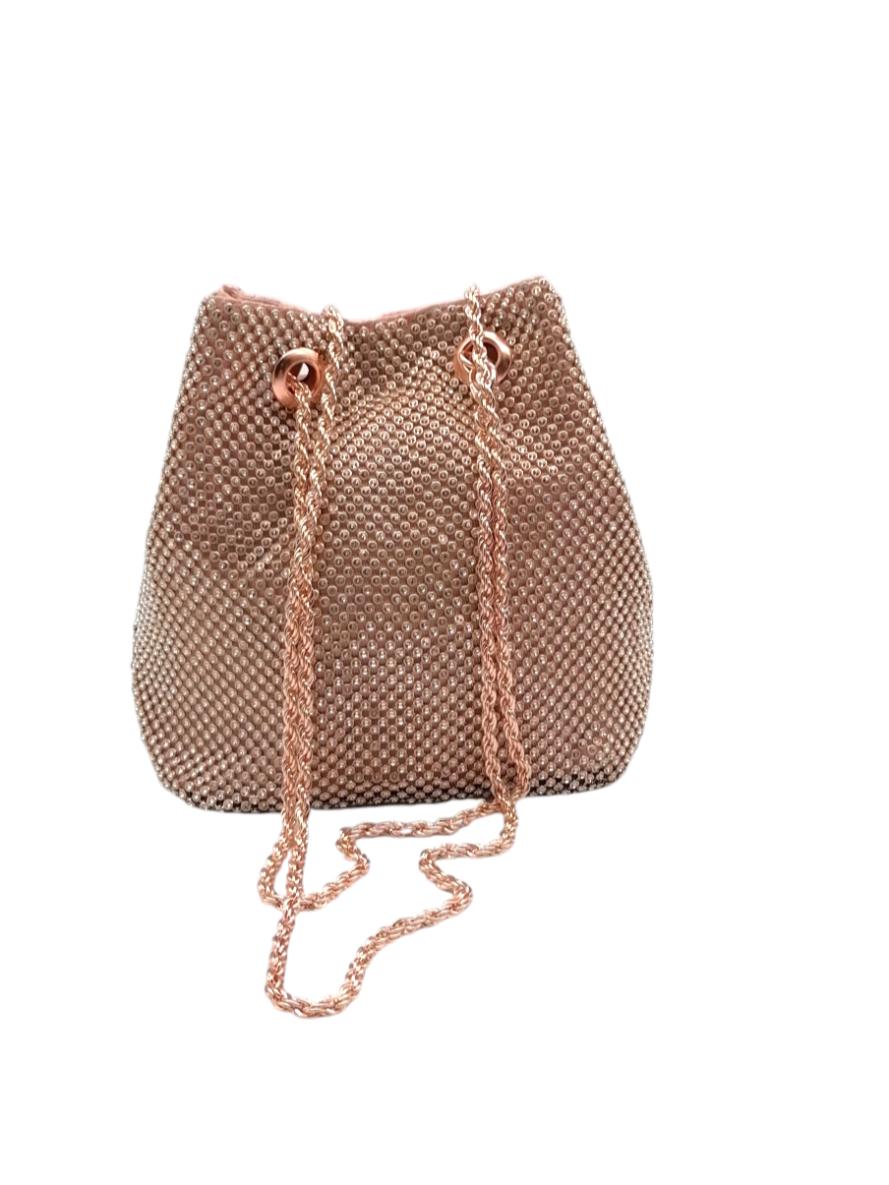 Αμπιγιέ τσαντάκι με διακοσμητικά στρασάκια. Διαθέτει μια βασική θέση τύπου πουγκί. Περιέχει αποσπώμενη αλυσίδα και φοριέται χιαστί.