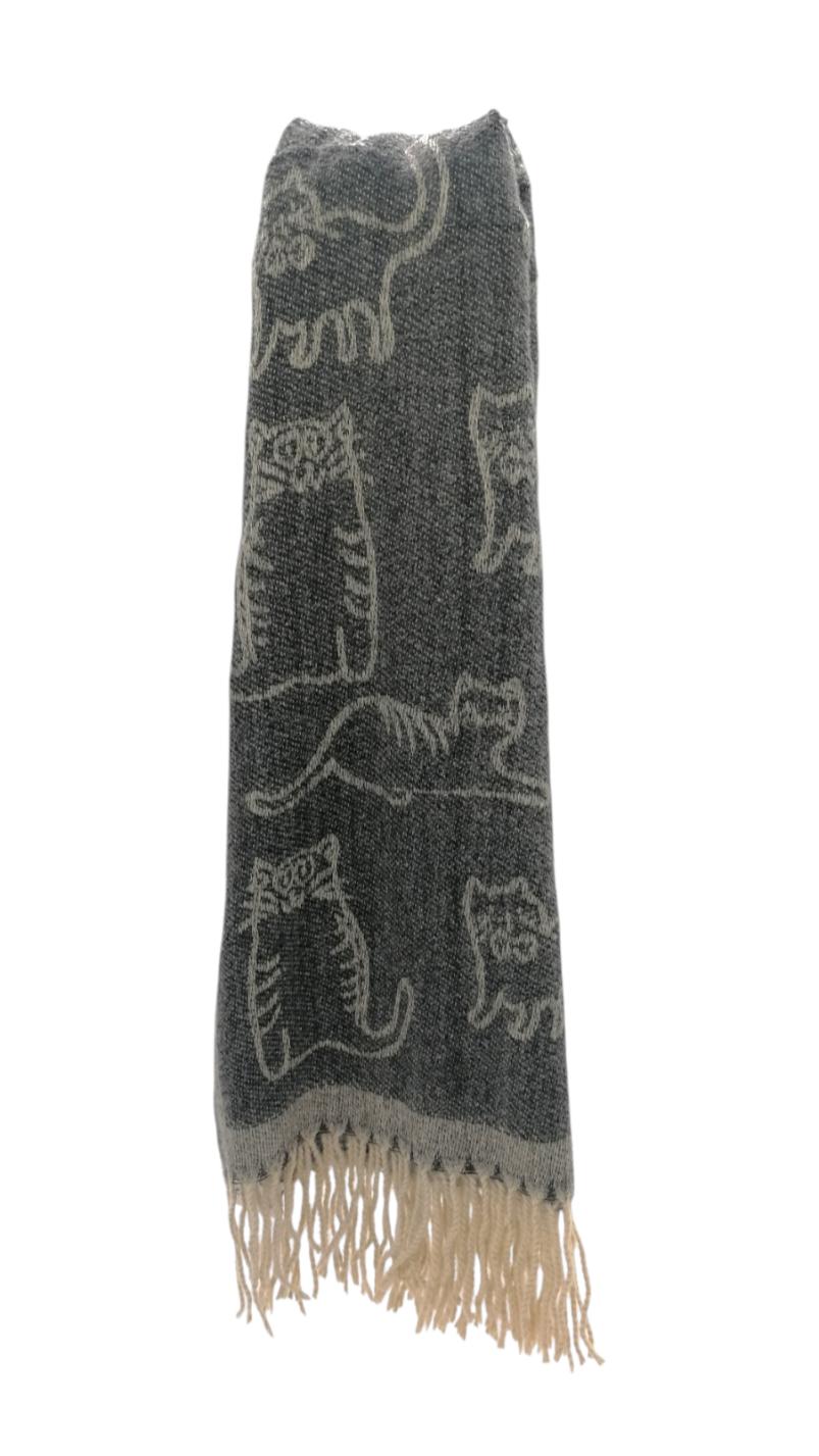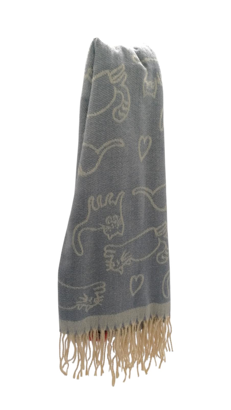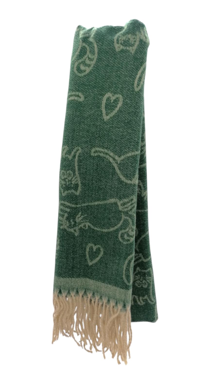Κομψή πασμίνα από κασμίρ με σχέδιο γατούλες και καρδιές. Η καλύτερη επιλογή για ζεστασιά και στυλ σε κάθε σας εμφάνιση!