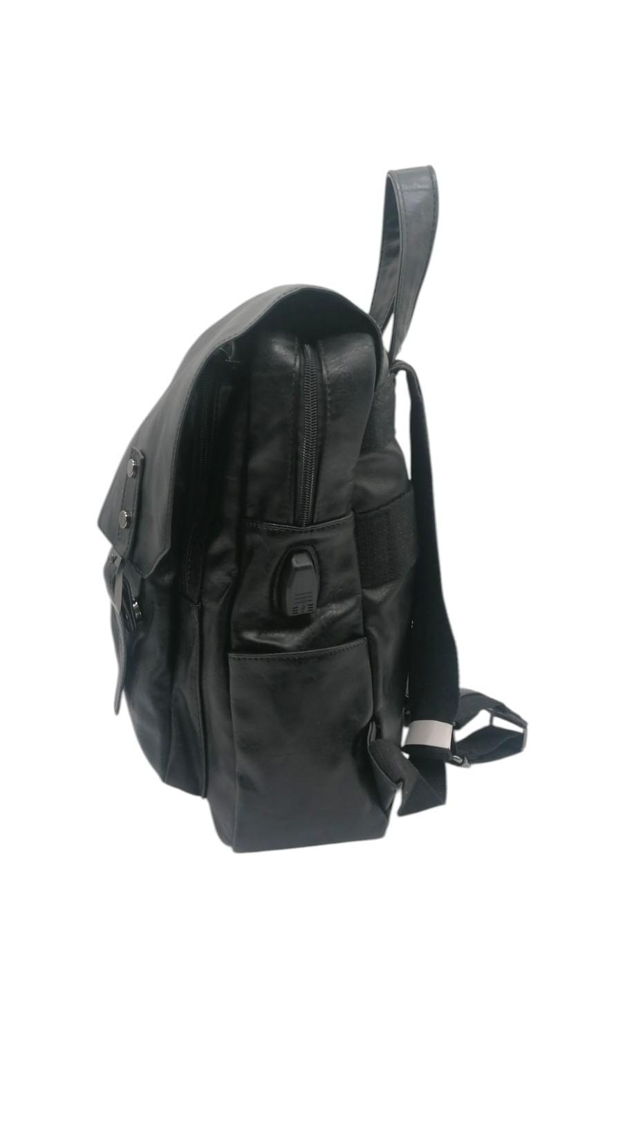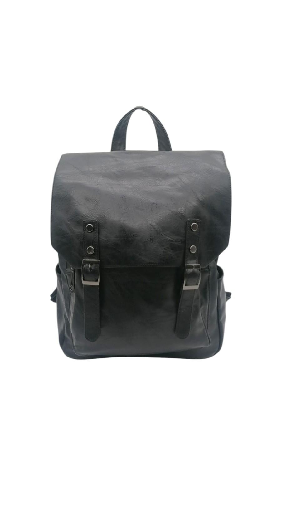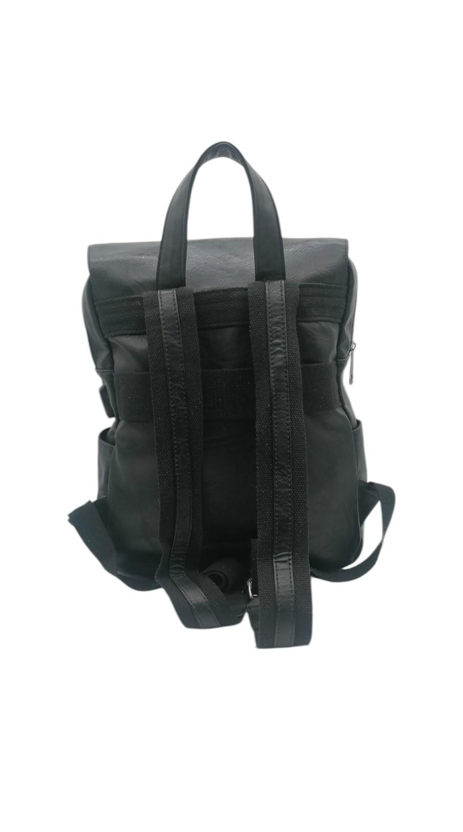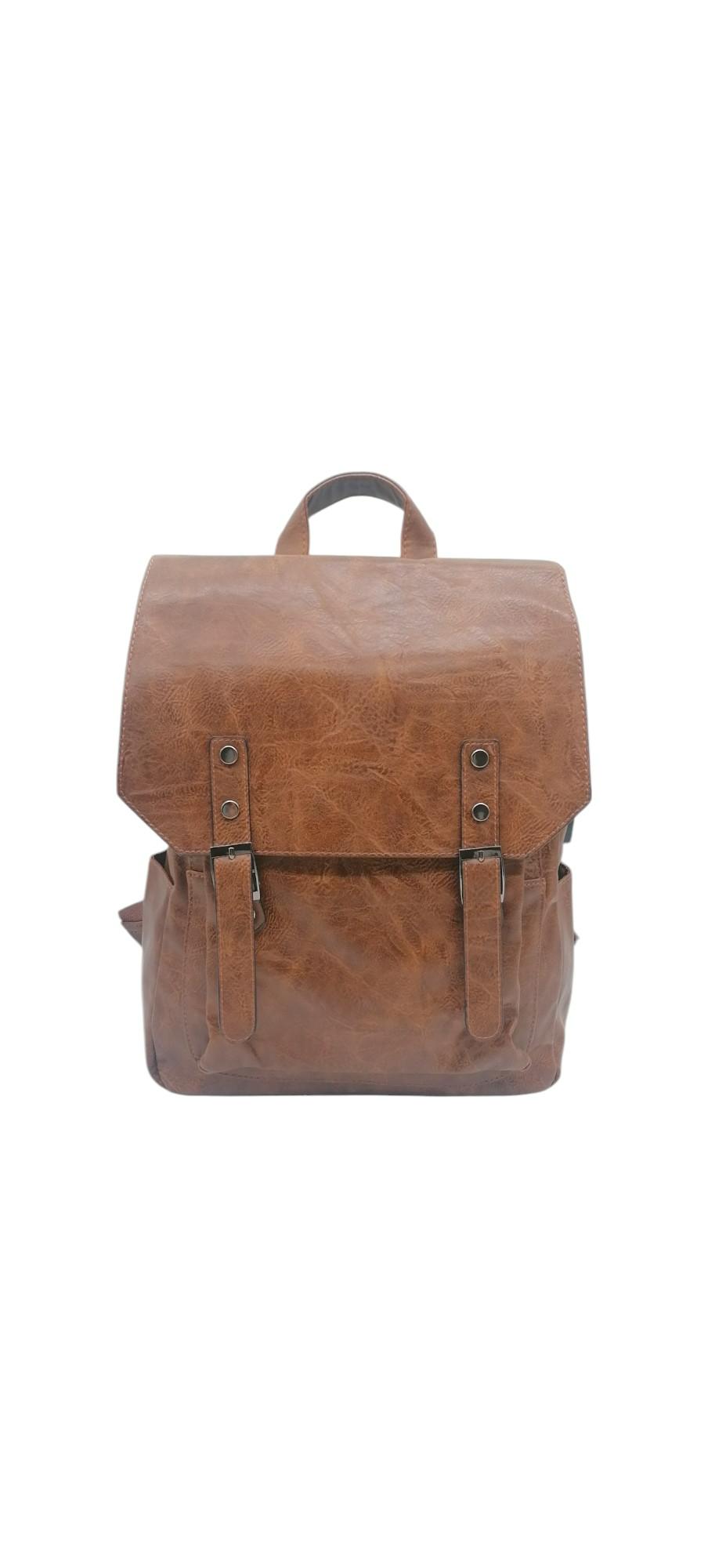 Σακίδιο πλάτης unisex από τεχνόδερμα, σε καφέ και μαύρο χρώμα.