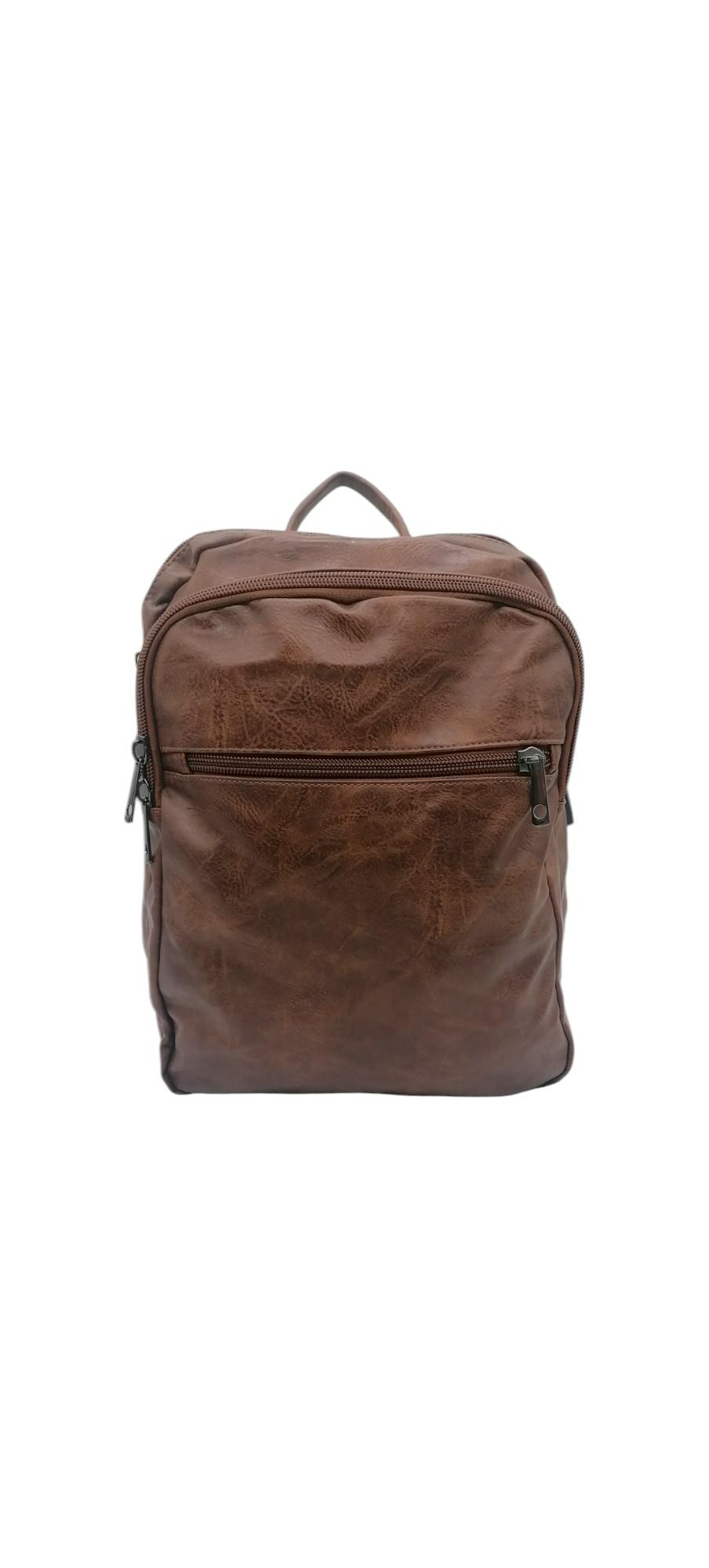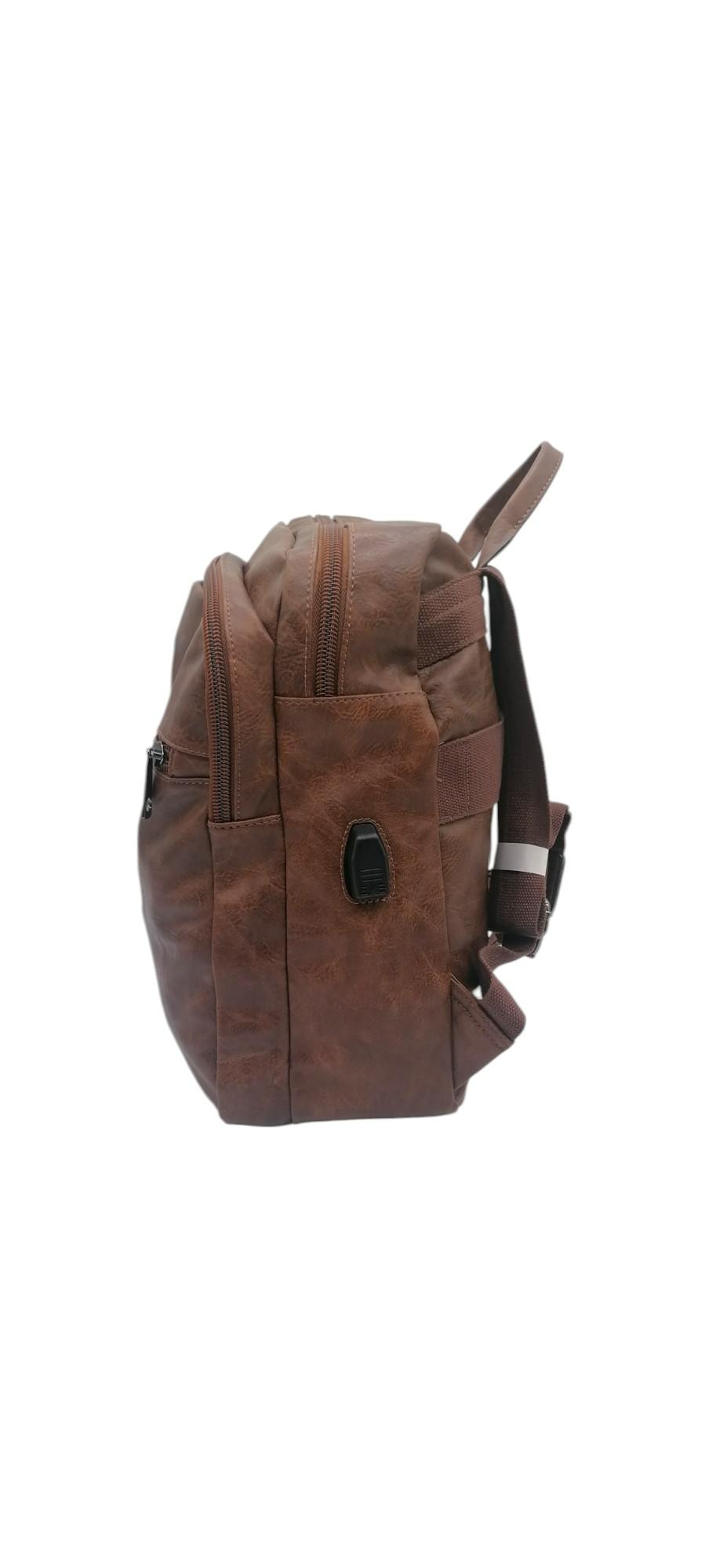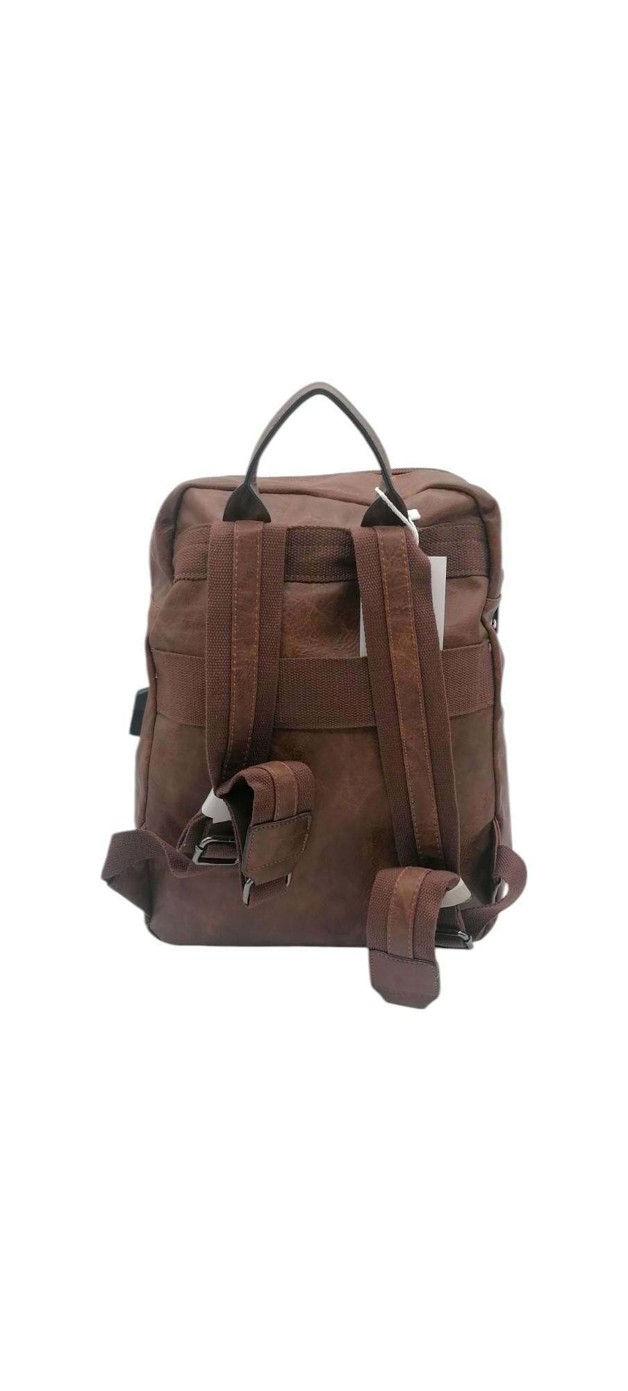 Σακίδιο πλάτης unisex από τεχνόδερμα, σε καφέ χρώμα.