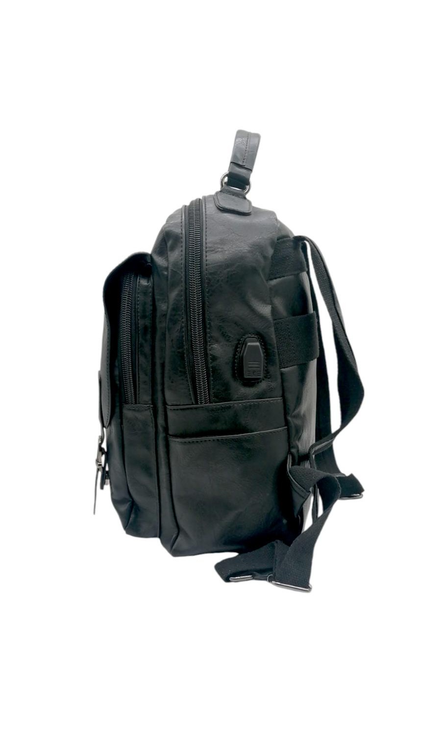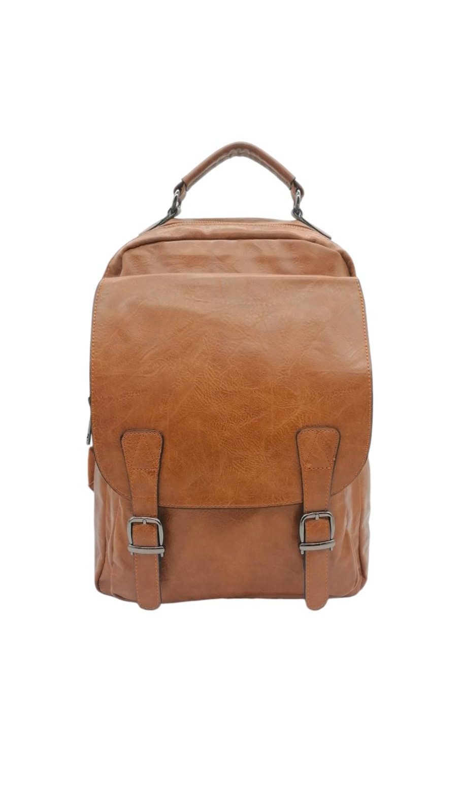 Σακίδιο πλάτης unisex από τεχνόδερμα, σε μαύρο και ταμπά χρώμα.