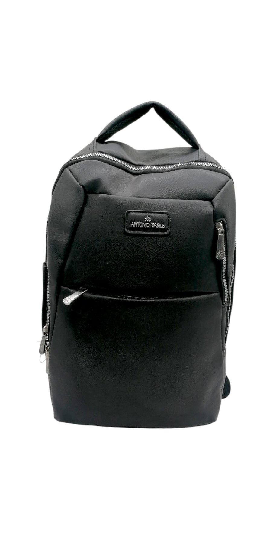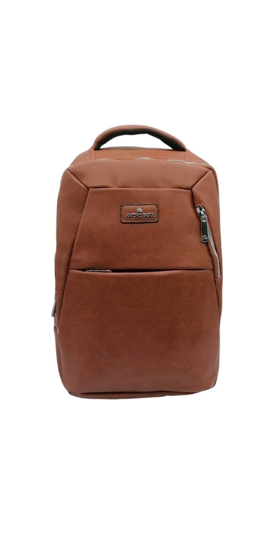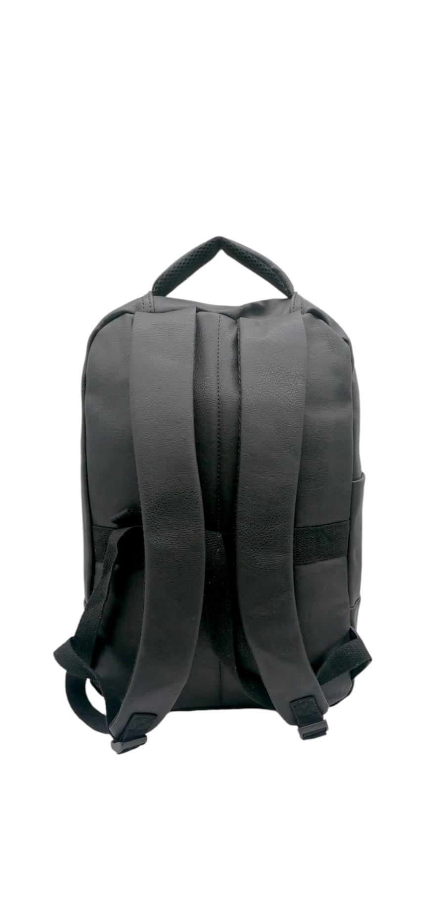 Σακίδιο πλάτης unisex από τεχνόδερμα, σε μαύρο και ταμπά χρώμα.